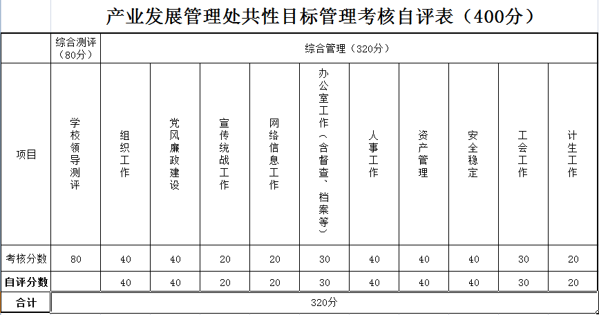 产业发展管理处共性管理考核自评表