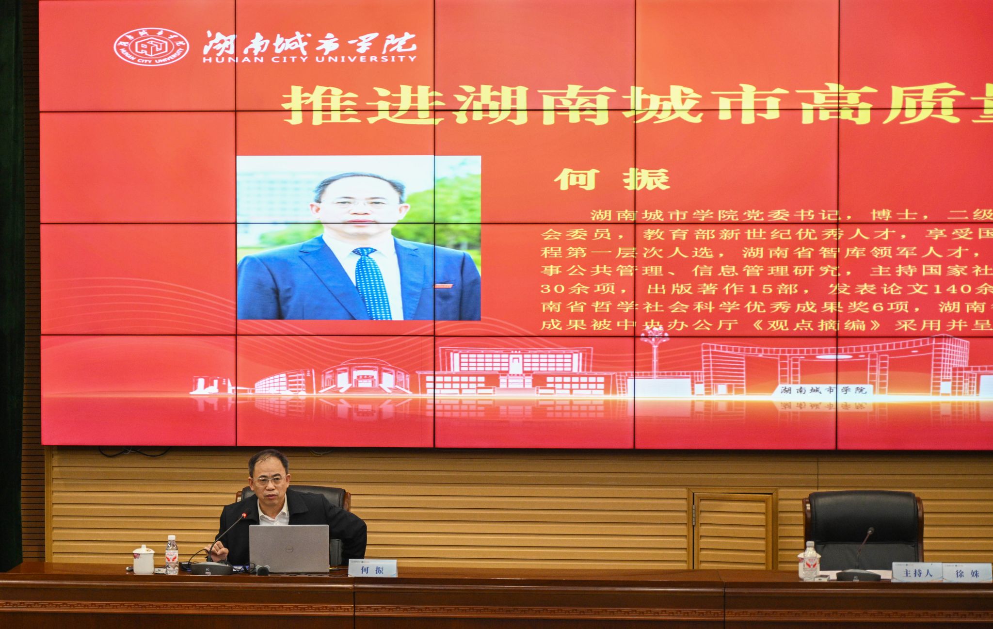 学校党委书记何振教授以“推进湖南城市高质量发展研究”为题,从“深刻领会习近平总书记考察湖南关于城市工作的重要论述和指示精神”“湖南城市发展的现状与问题”“推进湖南城市高质量发展的对策”三方面讲述了推进湖南城市高质量发展的实践方案。