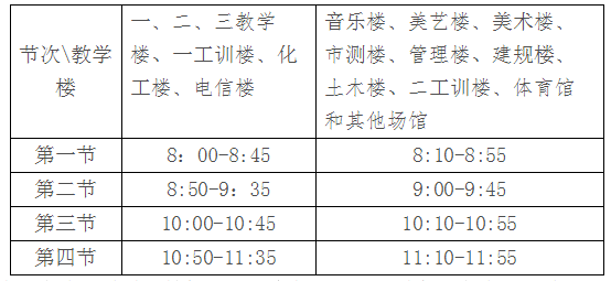 相关课表由学院调整后,报教务处审批。根据疫情防控需要,节后上午仍实行“错峰”上下课,下午及晚自习按冬季作息时间执行。