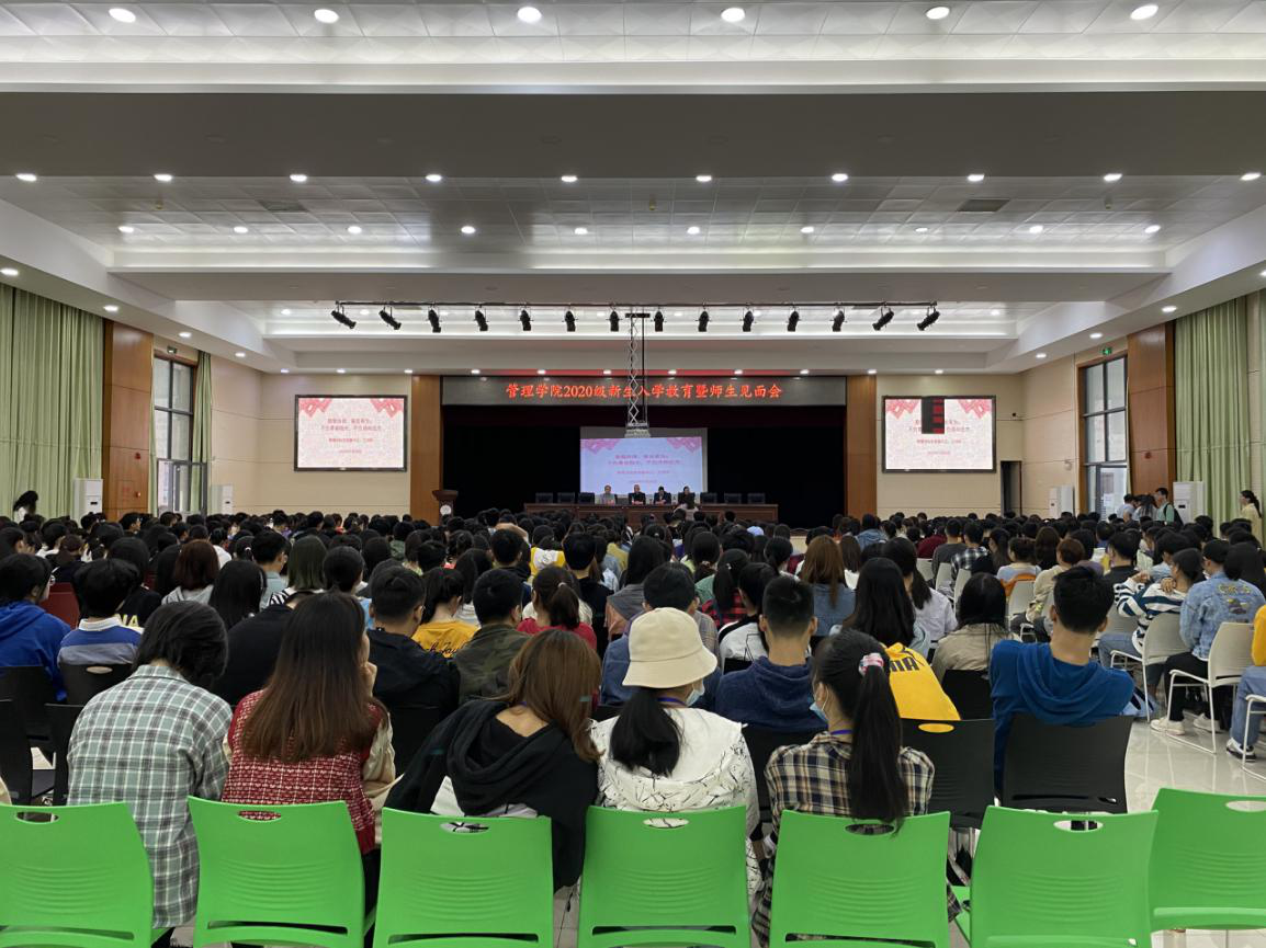 9月28日上午8点,管理学院在新食堂三楼活动中心举行2020级新生入学教育暨师生见面会,与会人员有管理学院党委书记徐习军、党委副书记王润华、副院长赵旭、分管教学工作的杜林远博士、各教研室主任、没课的任课老师、全体辅导员以及2020级全体学生。本次会议由徐习军书记主持。