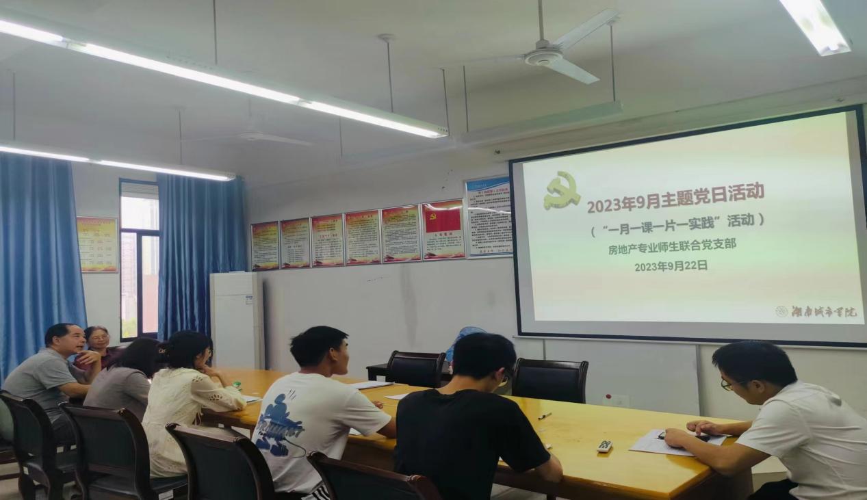 2023年9月22日下午,管理学院房地产专业师生联合党支部全体党员在管理楼606办公室召开线下线上相结合的主题党日活动。此次会议由党支部书记郑慧开老师主持。