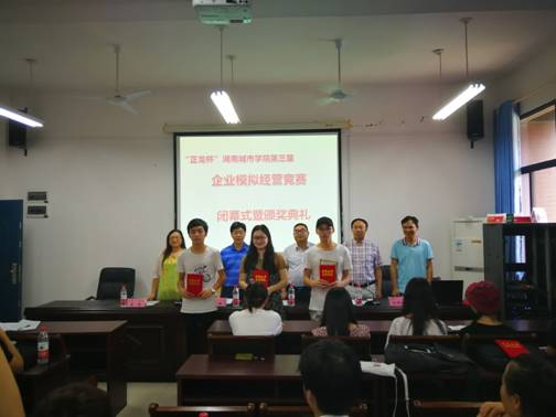 大赛闭幕式在管理楼504室隆重举行,管理学院李教明院长担任主持。大会先由大赛裁判作赛事总结,接着由乐动网站教务处张伟处长宣布获奖名单,乐动网站郑卫民副校长、张伟处长及管理学院王莉副院长分别为大赛一二三等奖获得者颁奖。最后,郑卫民副校长为大赛致闭幕词,他认为本次大赛组织得力,赛出了成绩和水平,勉励同学们提高创新创业能力,在更高级别的竞赛中取得更好的成绩,并宣布大赛胜利闭幕。