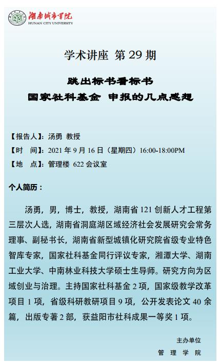 【管院科研论坛】29 汤勇 教授 跳出标书看标书--国家社科基金申报的几点感想
