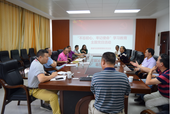 2019年919日下午,基建与后勤管理处党支部在二办公楼420会议室开展了“不忘初心,牢记使命”学习教育主题党日活动。活动由支部书记杨少清主持,全处党员、入党积极分子参加活动。