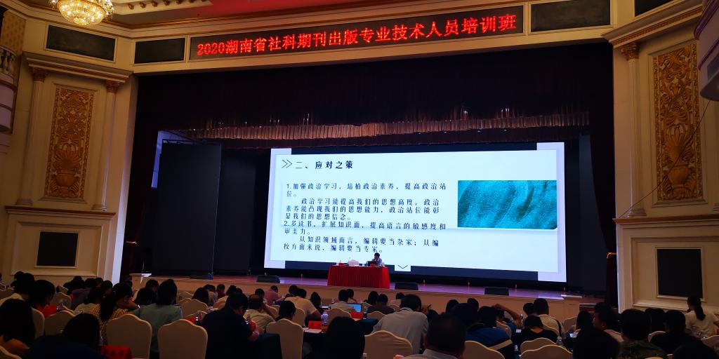 为加强出版专业技术人员培养,根据《出版专业技术人员继续教育暂行规定》(新出政发〔2010〕10号),湖南省委宣传部出版产品质量监督检测中心在长沙明城国际大酒店举办了2020年湖南省社科期刊出版专业技术人员培训班。为适应不断提高的专业技术要求,2020年9月2日至9月5日,《城市学刊》编辑部全体人员参加了此次培训。培训包含了编辑的素养、期刊审读与导向把关、《报纸期刊质量管理规定》解读、社科类期刊编校质量差错解析、如何建设一流社科期刊、5G新技术对期刊出版的机遇和挑战等六个方面的内容。经过几天的学习,大家表示获益匪浅,以后要多出来学习、培训,以紧跟行业前沿与要求。